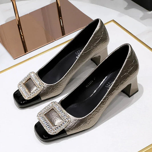 Dam Pumps Fyrkantig TĂ„ PU-Material Elegant Design