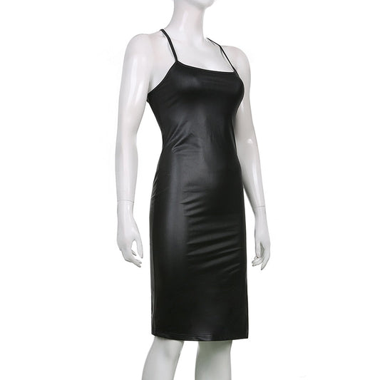 Kvinnors Miniklänning Spaghetti Band PU-Läder Midi