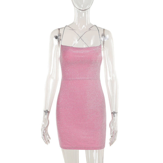 Kvinnors Glittrig Miniklänning Justerbara Spaghettiband Skimrande Polyester
