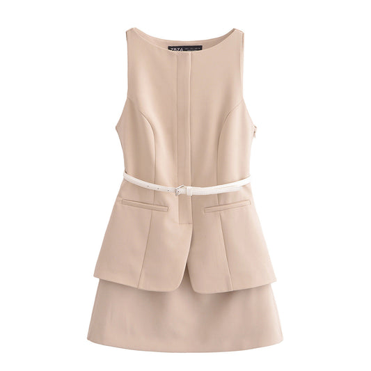 Dam Klänning Kort Bältesdesign Polyester Elegant Sommaroutfit