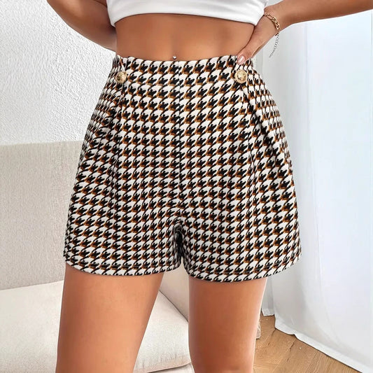 Dam Korta Byxor Karom Mönster Bomull Avslappnad