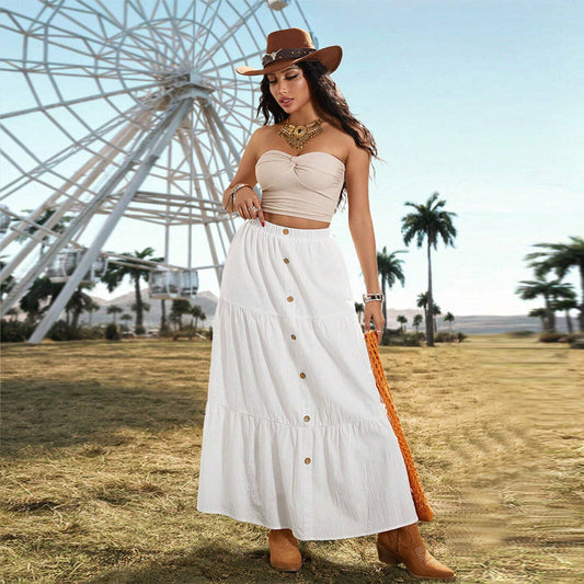 Dam Kjol Monokrom Satinstruktur Elastisk Midjeband