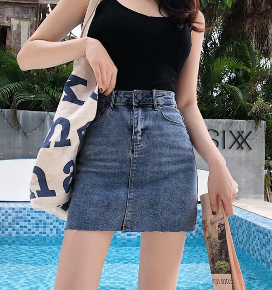 Kvinnors Minikjol i Denim med Sidofickor och Tight Passform