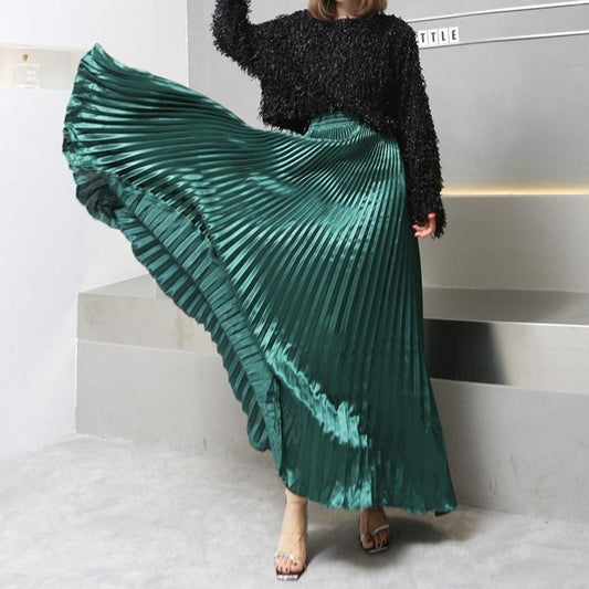 Dam Maxikjol Utställd Elastisk Midjeband Glansig Väv