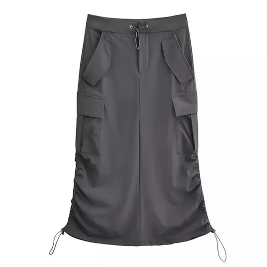 Dam A-Linje Kjol Cargo 100% Bomull Medellängd med Slits och Fickor
