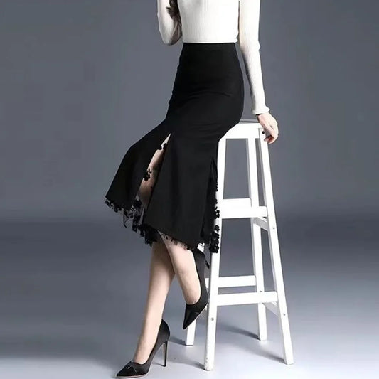 Dam Blyertskjol Sidoslits Modern Design Polyester Viskos Elastan