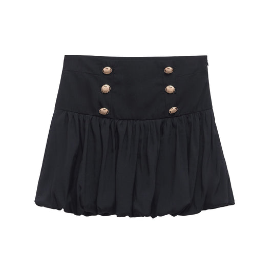 Dam Halvkjol Monokrom Stil Med Knappar 100% Bomull