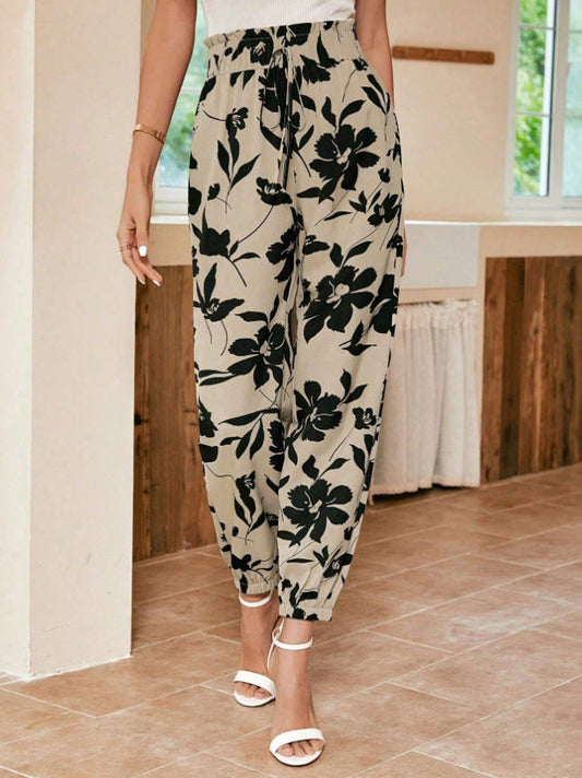 Dam Joggingbyxor Blommönster LÀtt Material med Sidofickor