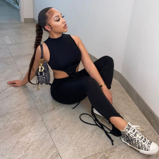 Dam Set Ărmlös Top och Byxor Polyester Spandex