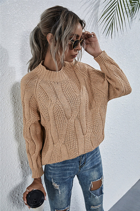 Stickad Dam Tröja med Stativkrage i Polyester för Avslappnad Elegans