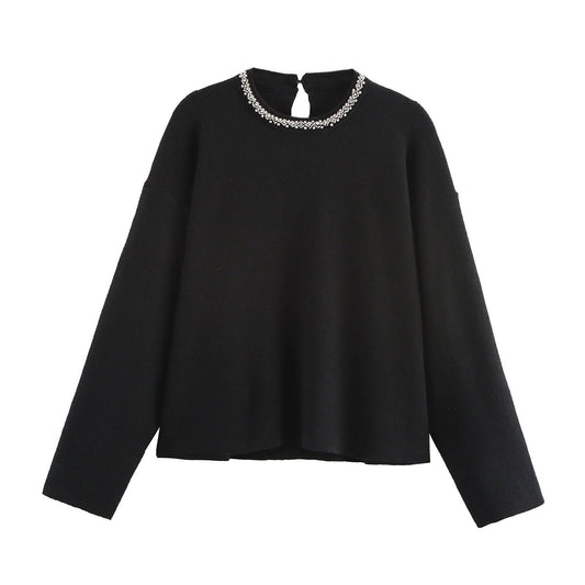 Kvinnors Tröja Elegant Mjuk Andningsbar Tyg med Kristallkrage