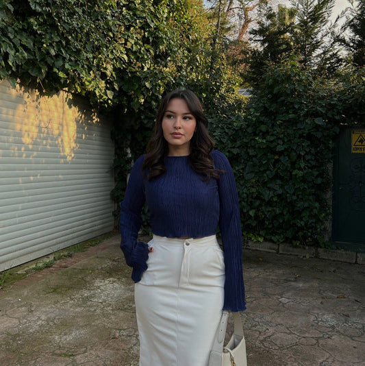 Dam Rippad Tröja LÄngÀrmad Bomull Figur-Hugging