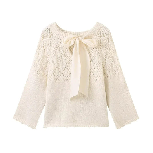 Stickad Dam Tröja med Slingdekoration och Rund Halsringning 100% Bomull