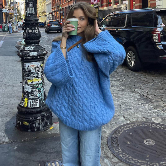 Kvinnors Stickad Tröja Hög Krage Mjuk Akryl Bred Passform