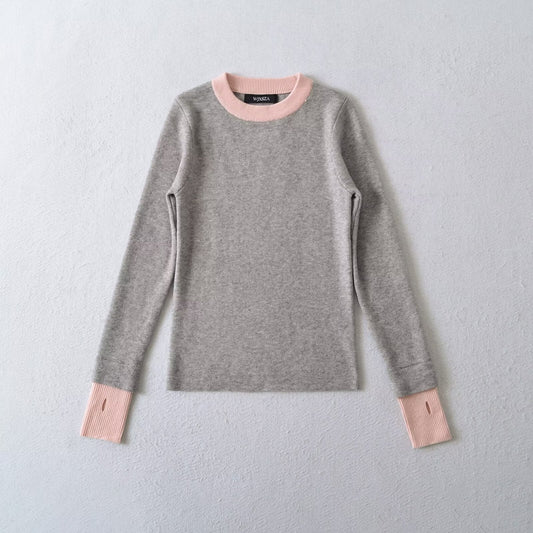 Stickad Tröja Dam med Kontrasterande Manschetter i Högkvalitativt Material