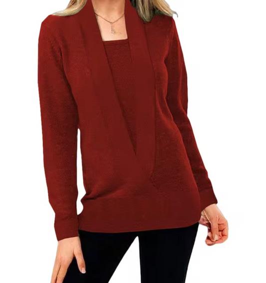 Dam Stickad Tröja Djup V-hals Mjuk Tyg LĂ„nga Ărmar