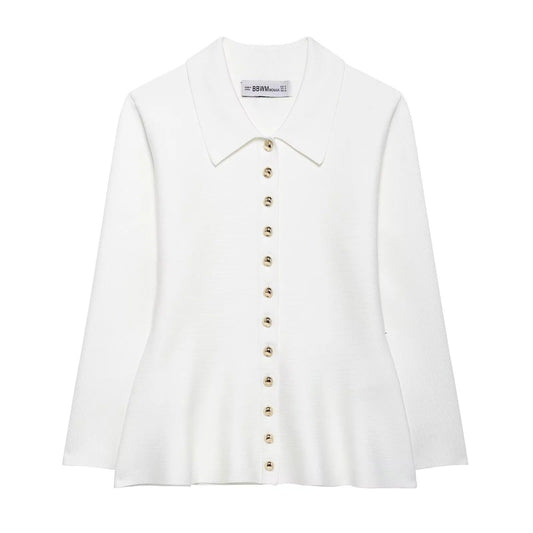 Kvinnors Stickad Blus Klassisk Krage Andningsbart Tyg