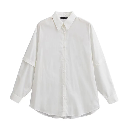 Vit Dam Blus Ăverdimensionerad Bomull Skjortablus