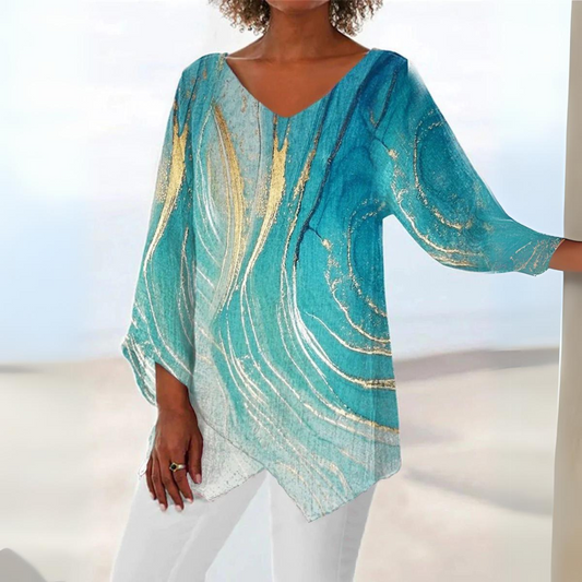 Dam Blus V-hals Chevronmönster Avslappnad Polyester