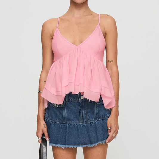 Kvinnors Topp Skiktad Volant Andningsbar Bomull