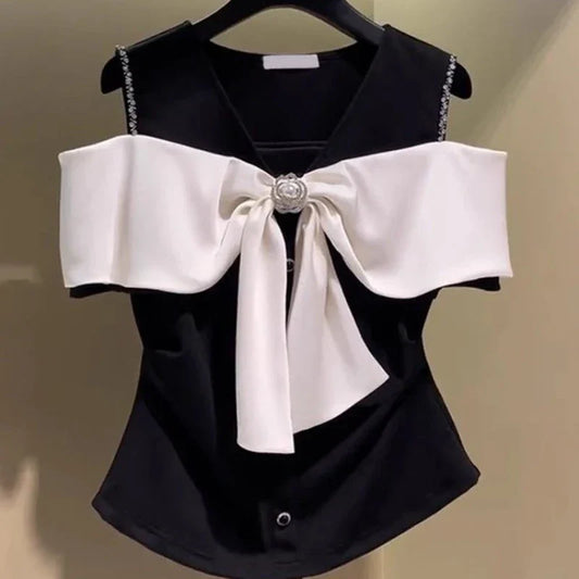 Kvinnors Axelfri Topp Asymmetrisk Stretchigt Material