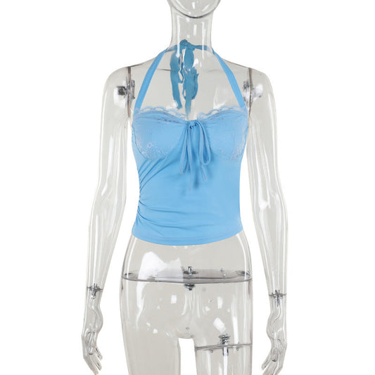 Dam Tank Top Slim Fit Spets V-hals Street Fashion
