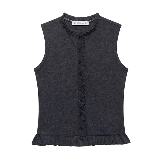 Kvinnors Ärmös Topp Med Ruffle Detaljer Bomullsblandning