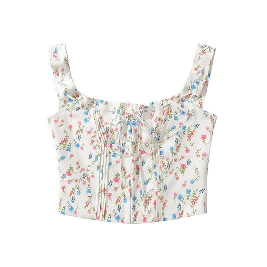 Kvinnors Festtopp med Volanger och Blommapplikation Justerbara Remmar