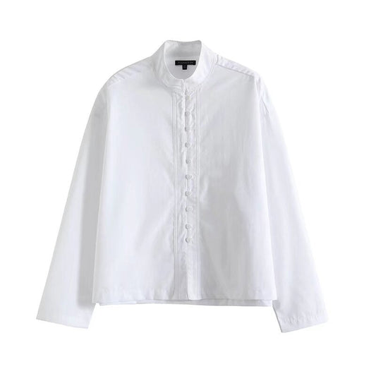 Kvinnors Skjorta Avslappnad Bomull Med Eleganta Detaljer