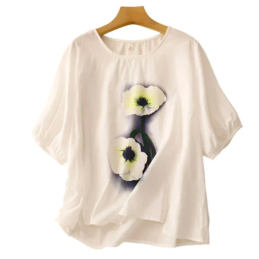 Dam Skjorta Blommig Linne Normal Passform 100% Linne