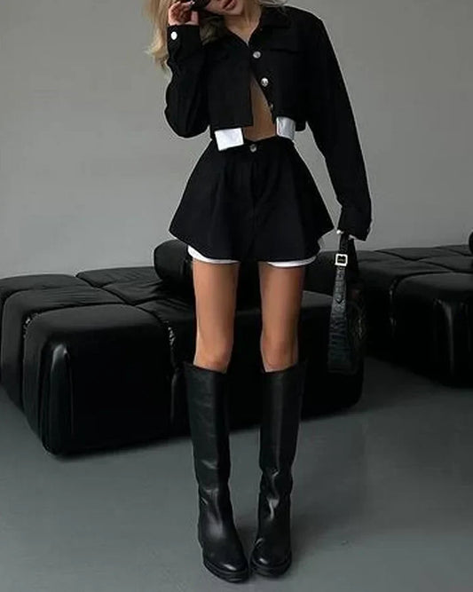 Dam Randig Skjorta och Högmidjade Shorts Lätt Material