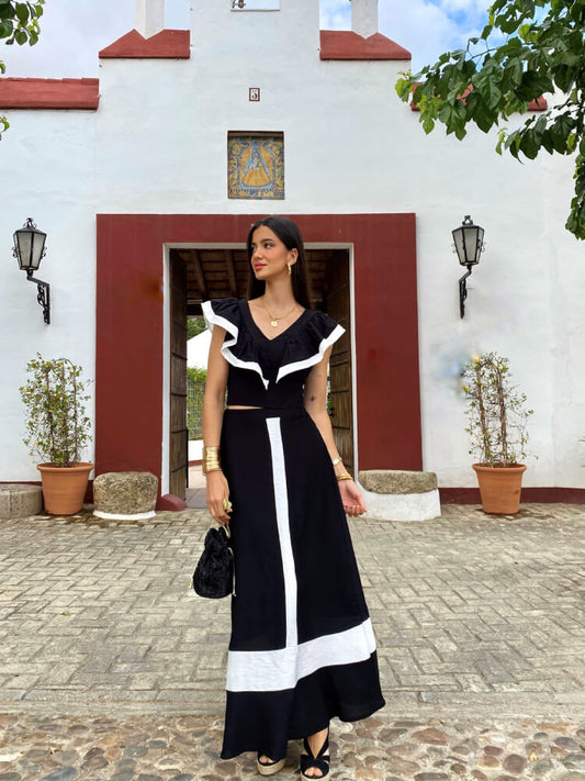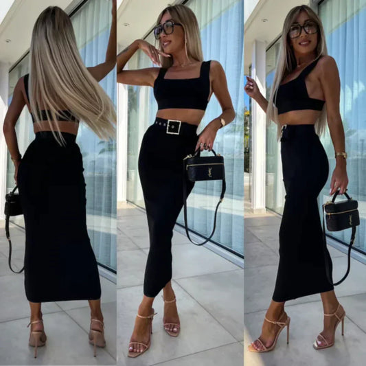 Dam Cami Top och Maxi Kjol Set Oregelbunden Design i Bomull och Polyester