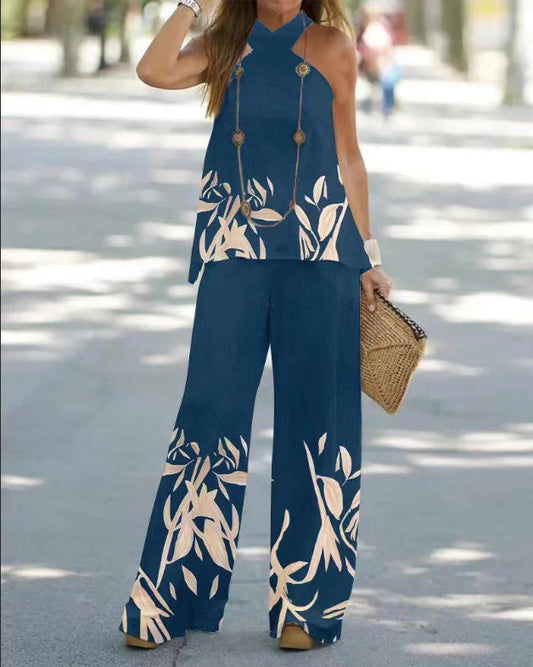 Dam Set Högmidjade Nio-punktsbyxor Ärmlös Topp Spandex