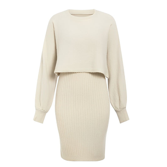 Dam Klänning med Vinghylsor Stickad Material Eleganta Lykta Ärmar