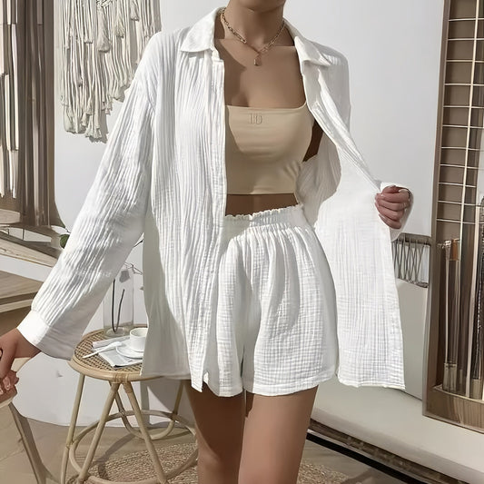 Dam Topp och Shorts Avslappnad Polyester