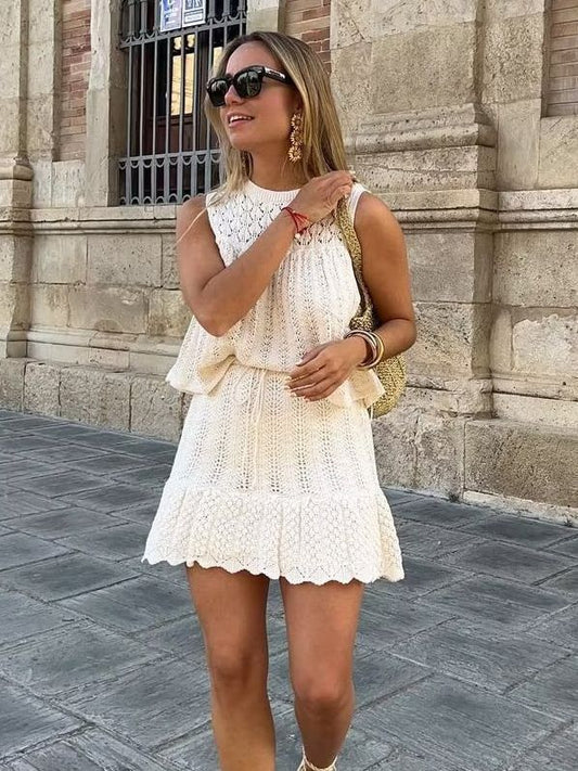 Dam Topp och Kjol Stickad Elegant i Akryl