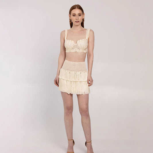 Dam Häkelset Topp och Kjol med Virkmönster i 100% Bomull - Perfekt Sommarkläder