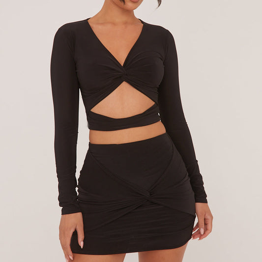 Damset Figurnära Topp Längre Kjol Elastiskt Tyg