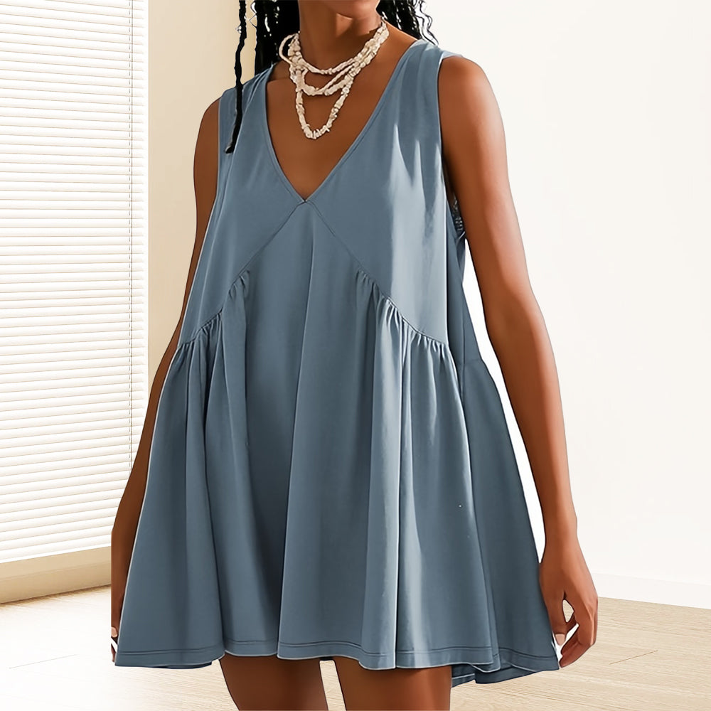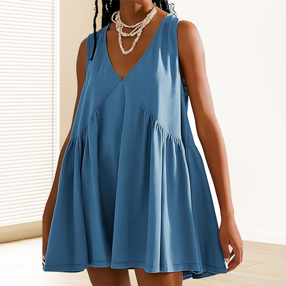 Ärmlös Klänning i Resortstil med V-halslinje