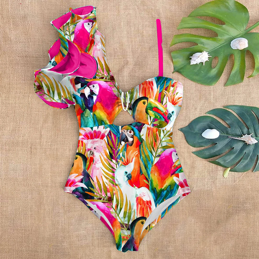 Upplev glädjen av att bära denna vackra baddräkt med ruffles och blommönster. Den är designad för att ge en känsla av stil och komfort vid varje simtur eller strandbesök.