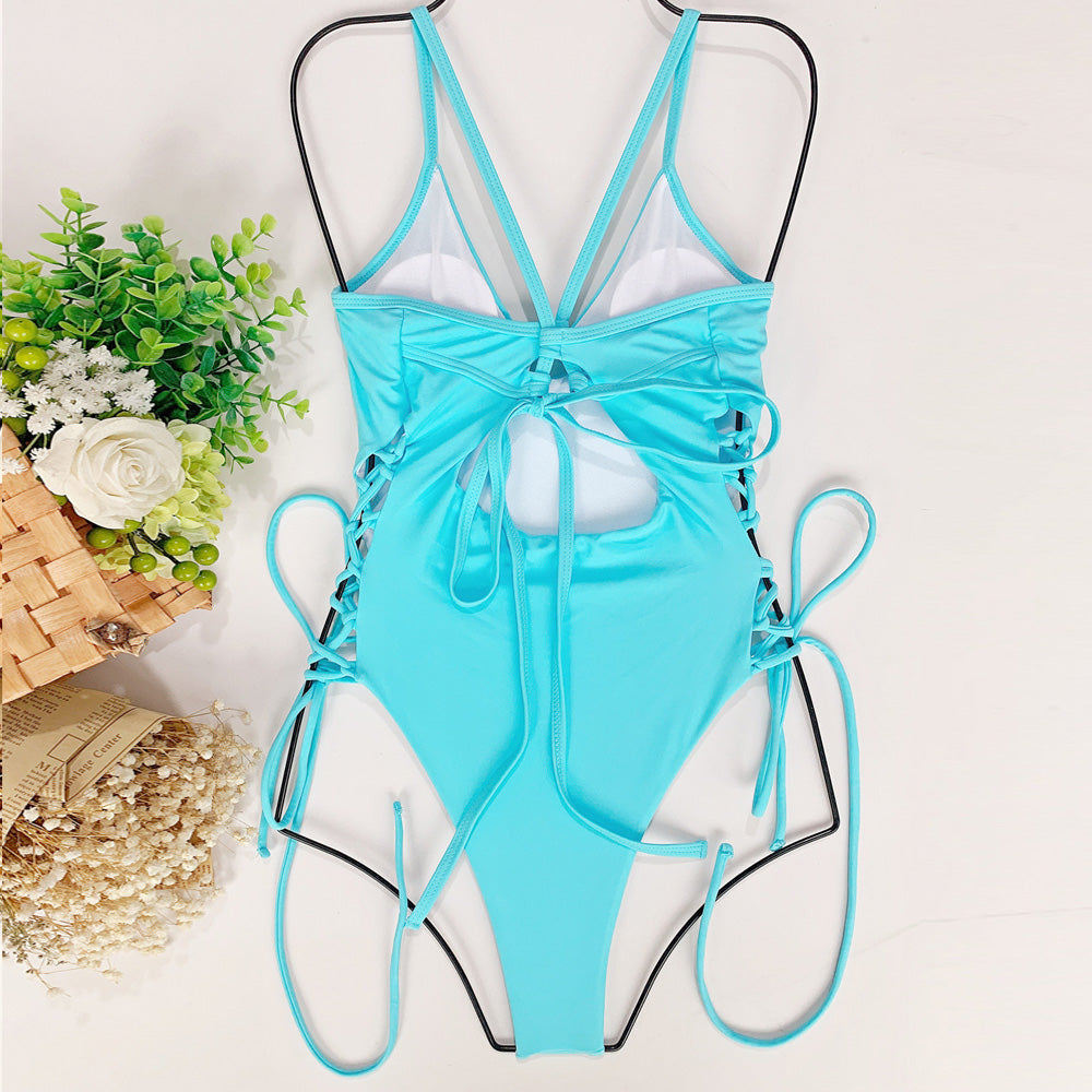 Kvinnors Högklippt Baddräkt med Öppen Rygg
