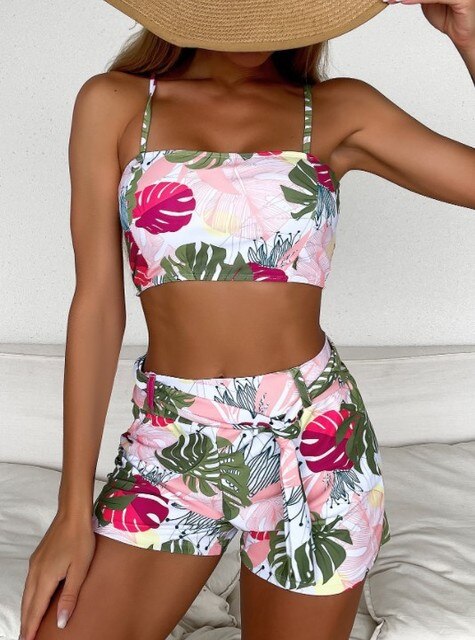 Bikini Dam Blommigt Tryck Lätt Material