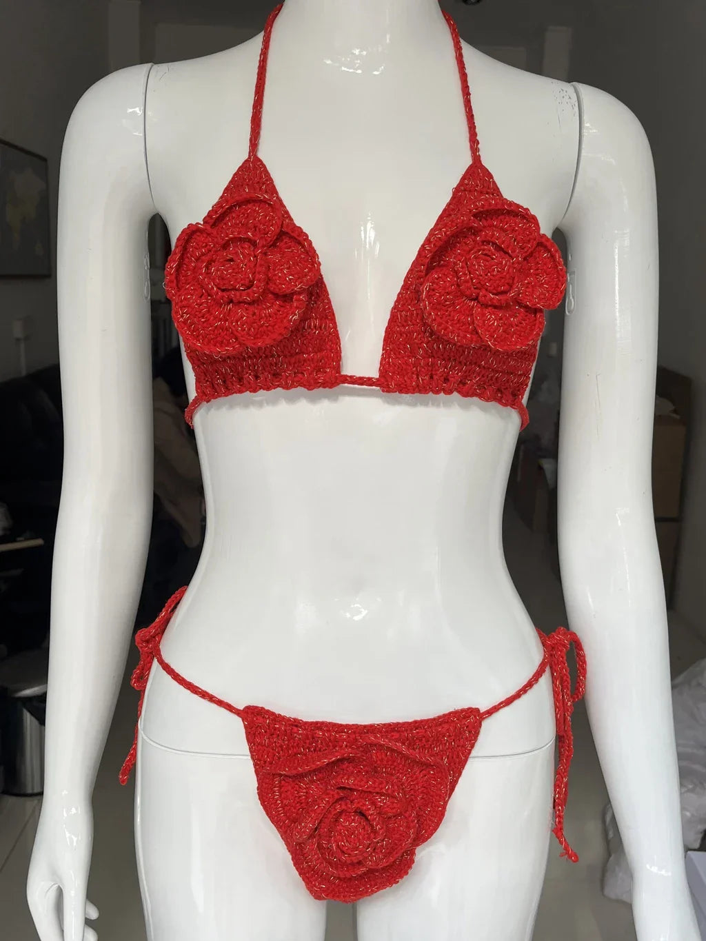 Upplev en perfekt kombination av stil och komfort med vårt virkade bikinisett. Denna bikini ger en känsla av frihet och självförtroende, perfekt för både avkoppling vid poolen och aktiva stunder i vattnet.