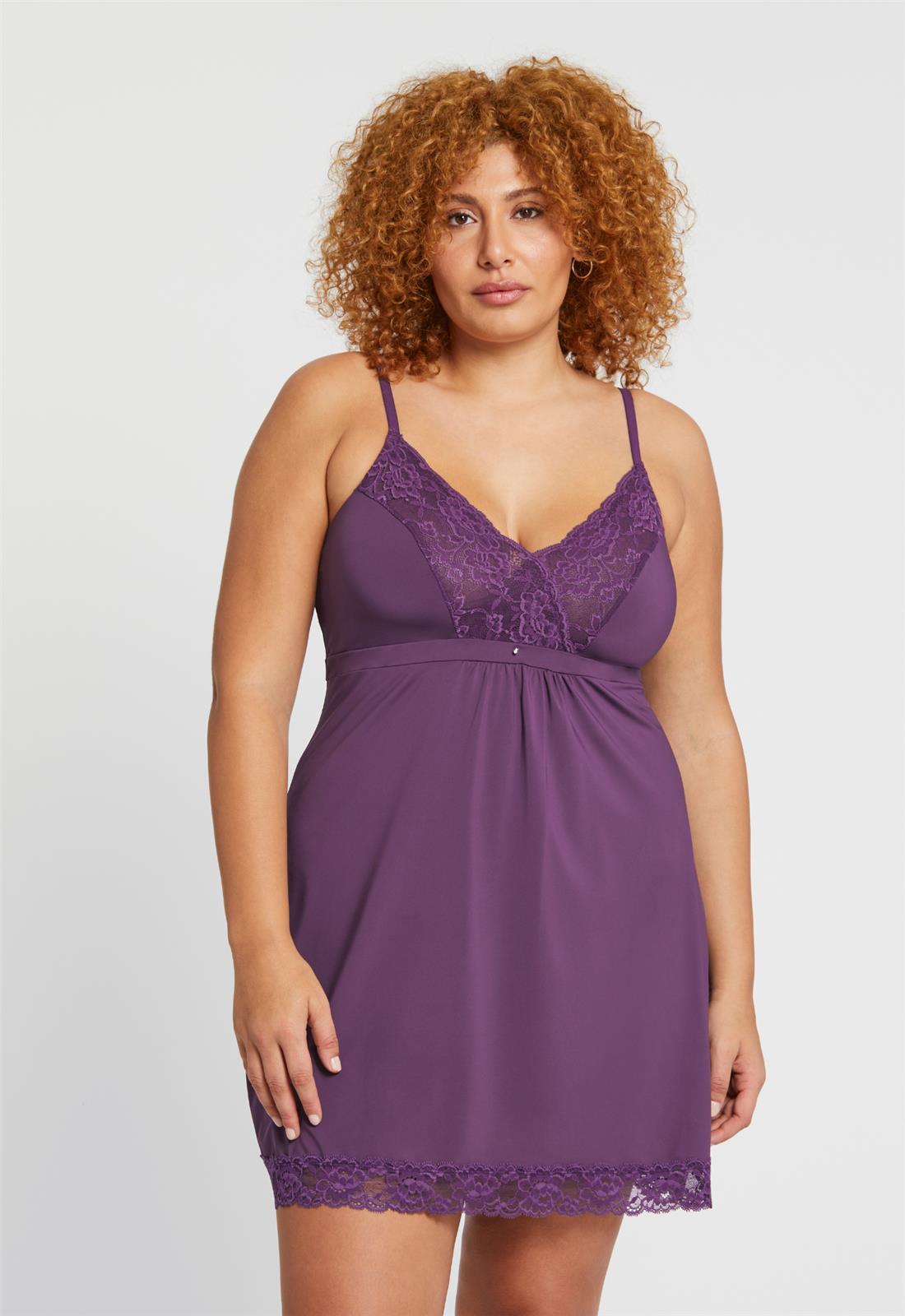 Denna kemis kombinerar elegans med funktionalitet. Den blommiga stretchspetsen ger en romantisk touch, medan det stödjande nätet och den dubbla mikrofiberbysten framhäver din naturliga form. Perfekt för både avslappnade kvällar hemma och som en del av din nattklädsel.