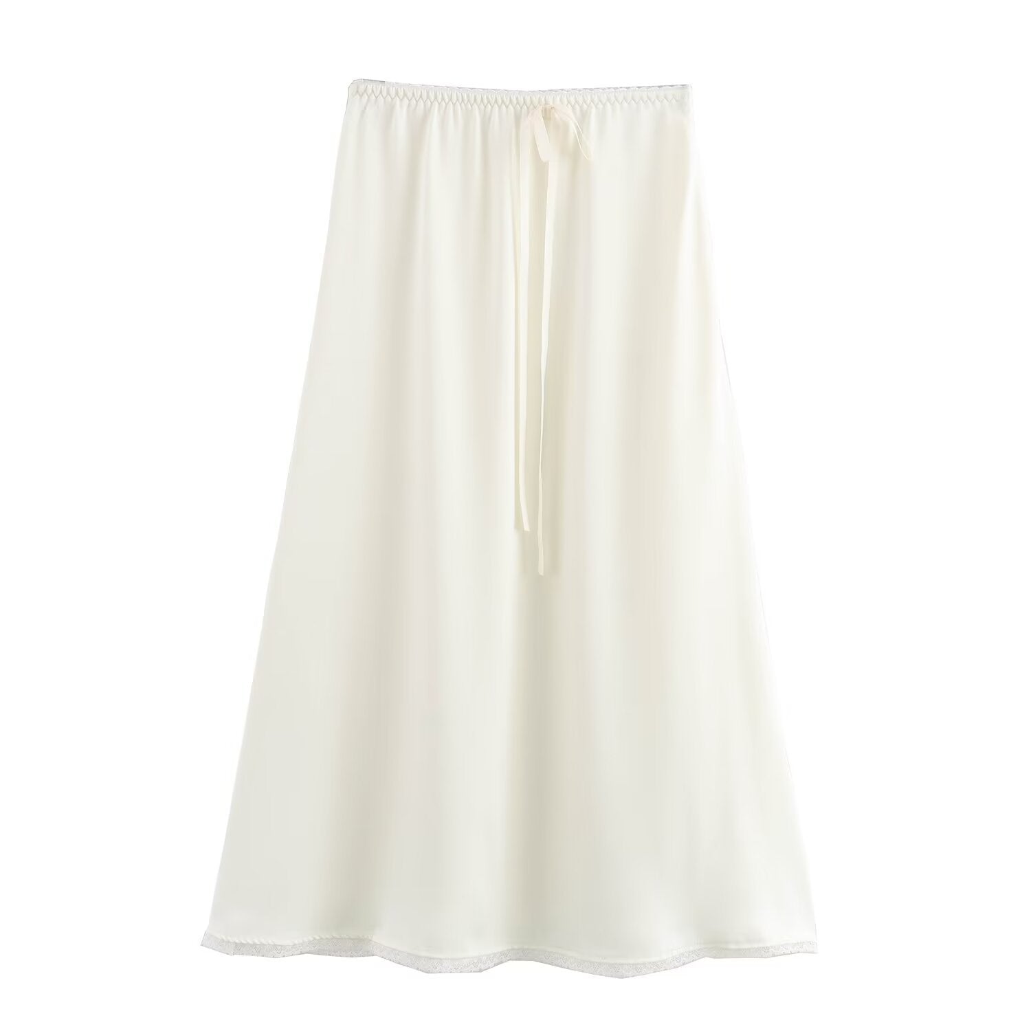 Dam A-Line Kjol Satin med Spetsdetaljer