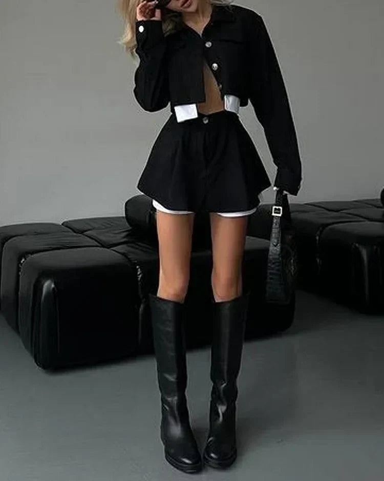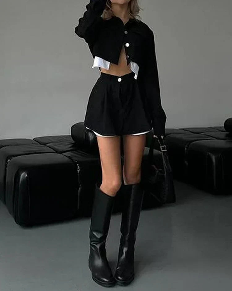 Denna chic set kombinerar en smakfull topp med perfekt passande byxor, vilket skapar en harmonisk och stilren look. Oavsett om det är en middag, cocktailparty eller fest, kommer du att vara i fokus med denna moderna design som förenar klassisk stil med nutida trender.