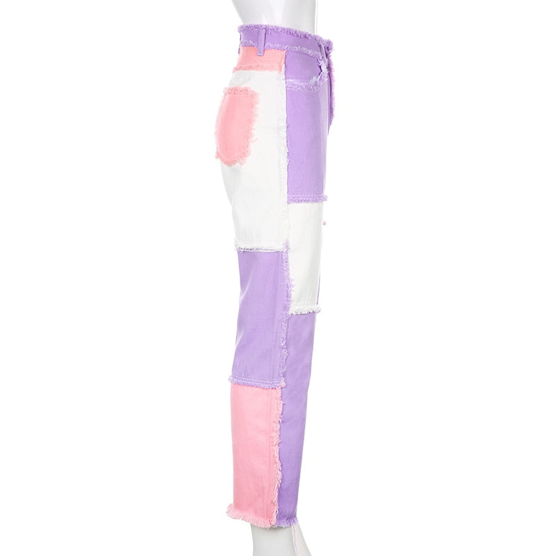 Upplev en unik stil med dessa ankel-längd jeans i patchworkdesign. Dessa jeans är perfekta för att ge din vardagslook en färgglad och modern touch.