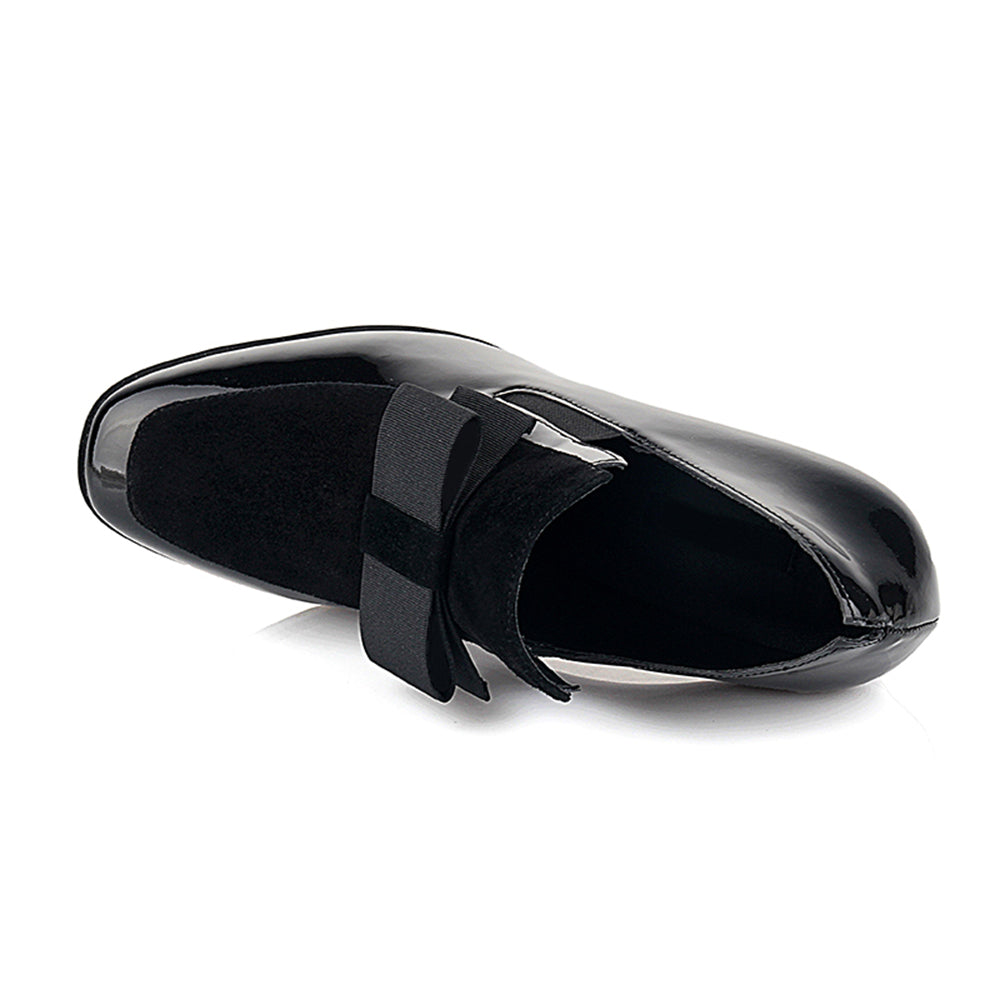 Dam Ankelpumps med Fjärilsknut Lackläder Blockklack