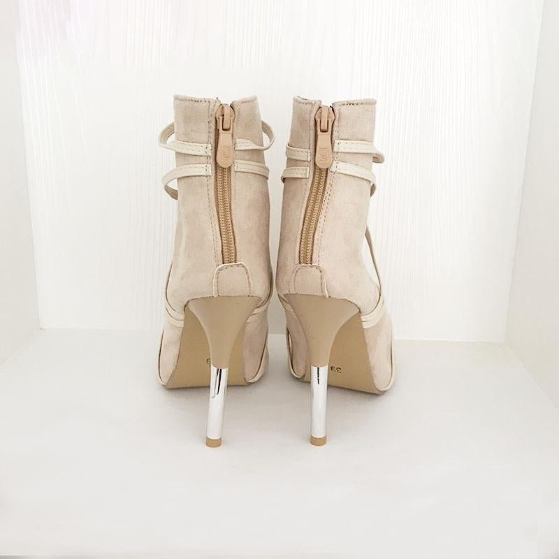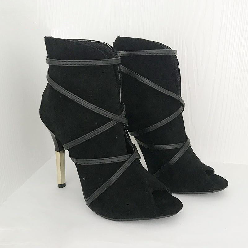 Dessa ankelstövlar är utformade med en djup uskärning och gladiatorstil, vilket ger en modern och trendig look. Perfekta för både vardag och fest, de kan enkelt stylas med olika outfits för att skapa en unik stil.