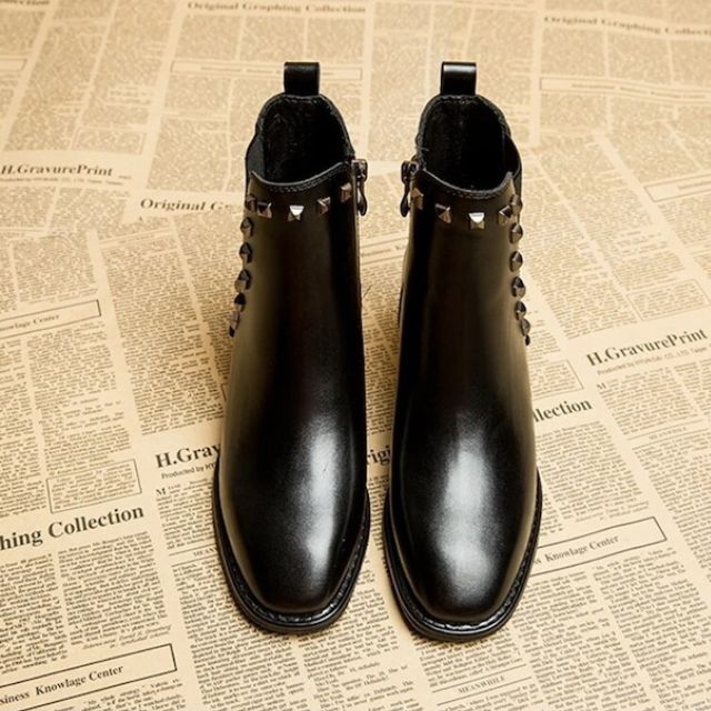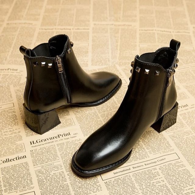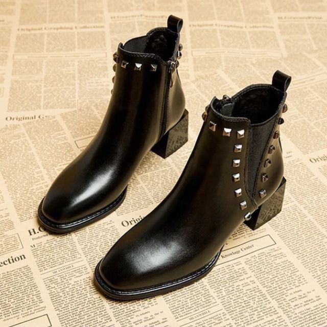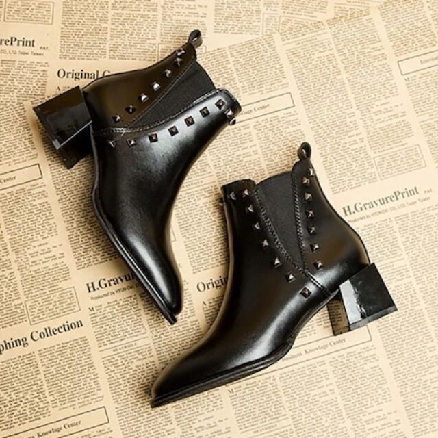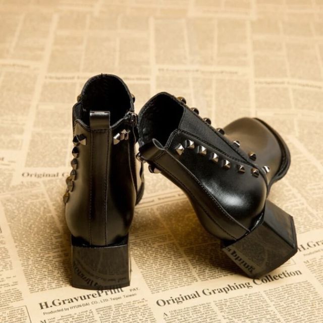 Dessa stövlar är designade med en serie nitar som ger en modern och edgy känsla. Den elastiska sidan gör att de är lätta att ta på och av, vilket gör dem perfekta för både vardag och fest.
